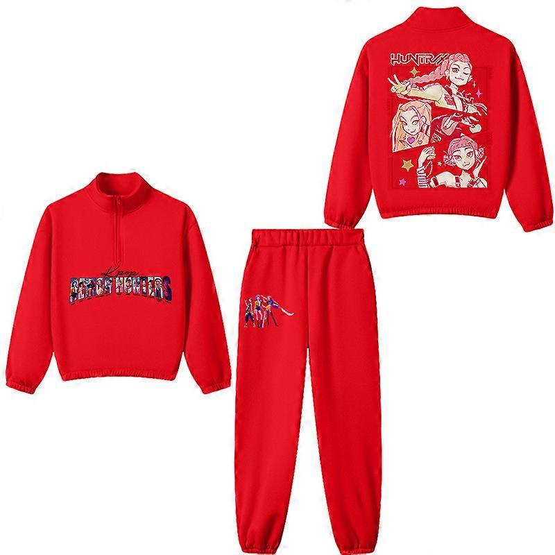 Red- Witch Hunter Boys And Girls Set Collar Half-Zip Sweat Trousers Sports Fleece Casual Children's Suit