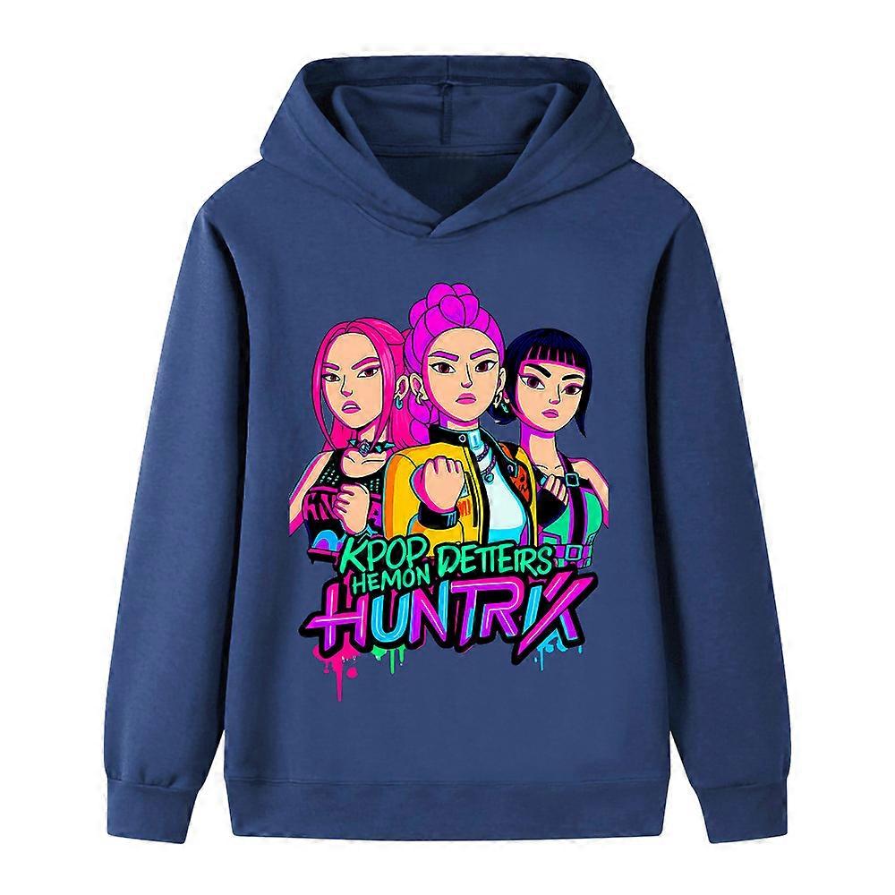 Navy Blue- Witch Hunt Print Pattern Big Kids Boys And Girls Hooded Sweatshirt B1210