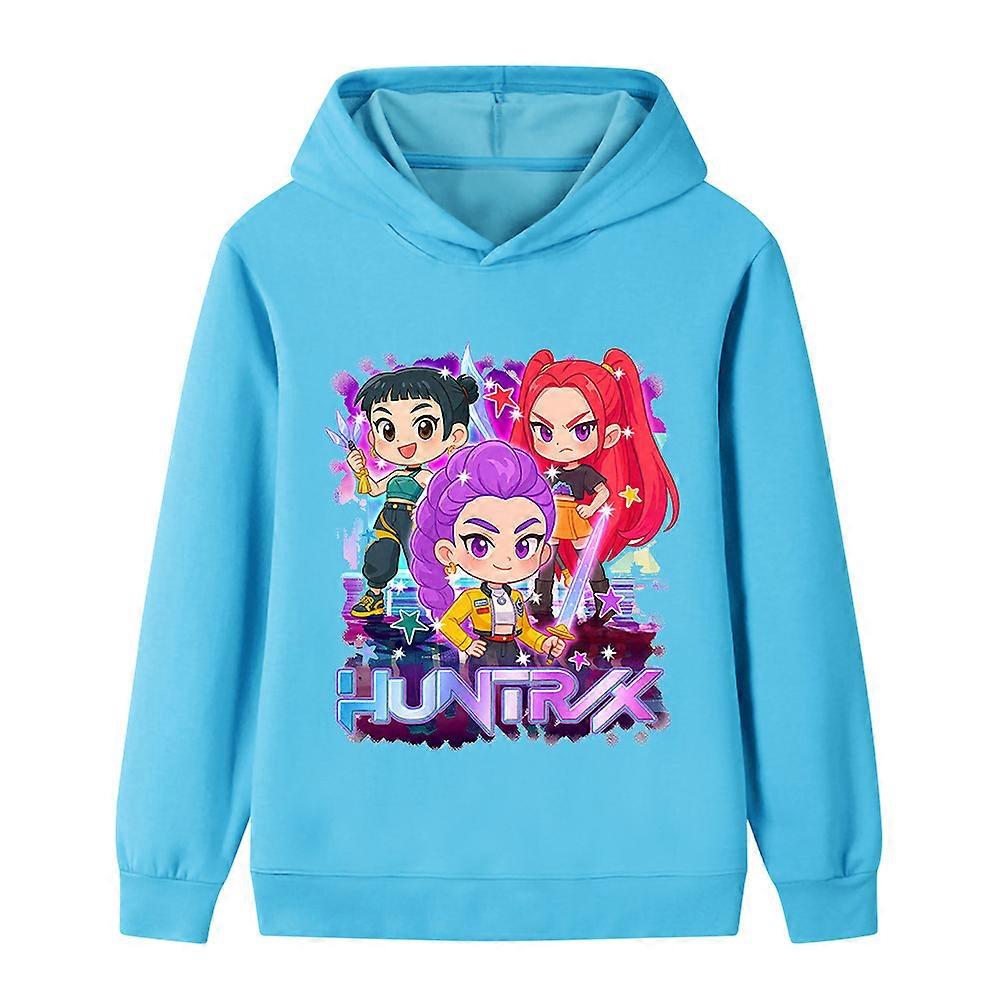 Light Blue- Witch Hunting Group Printing Pattern Medium And Large Children Boys And Girls Hoodie Sweater B12 22