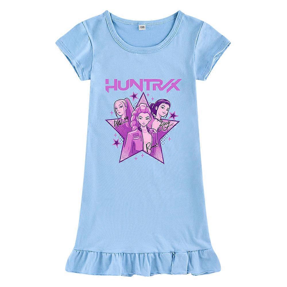 Light Blue-Hot Selling Witch Hunting Group Print Girl Dress Ice Silk Nightdress M1209