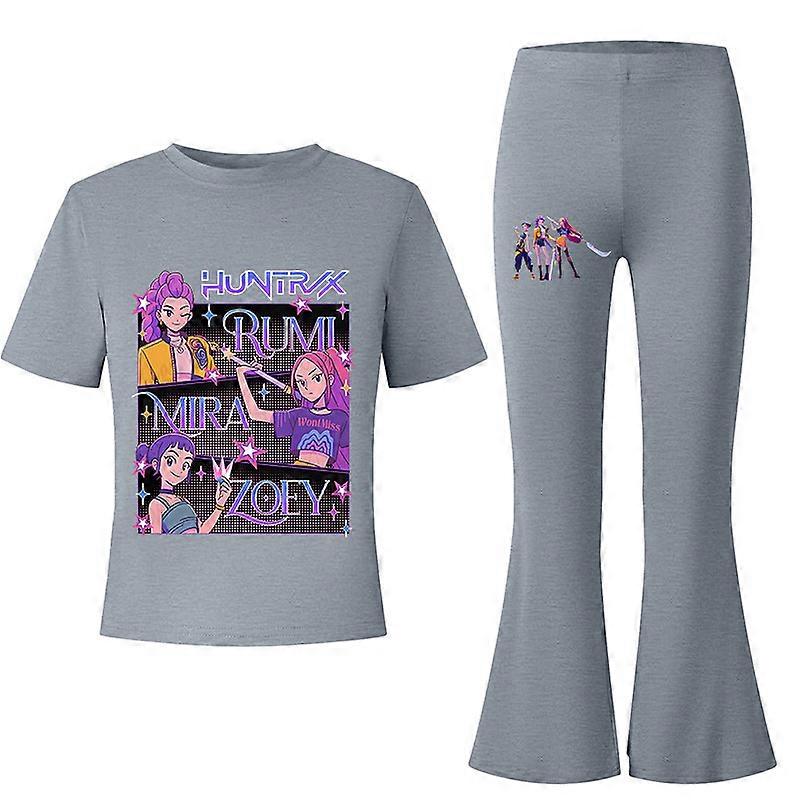 2-Gray- Witch Hunter's Big Kids Summer Short-Sleeved T-Shirt + Flared Long Pants Fashionable Casual Set