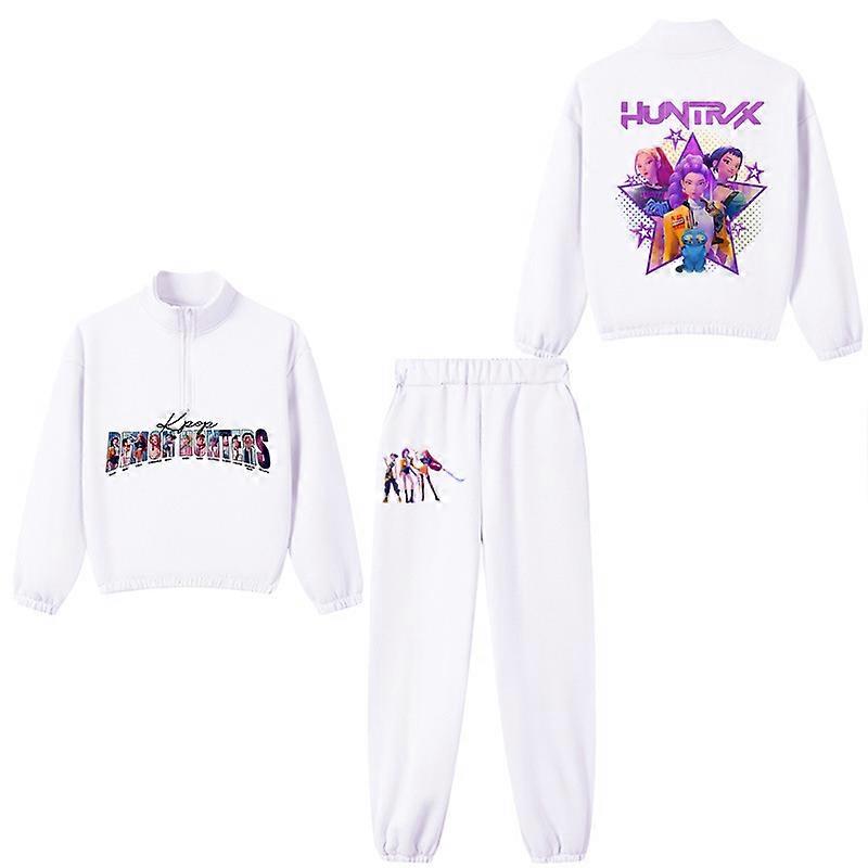 White- Witch Hunt Boys' And Girls' Stand-Up Collar Half-Zipper Hoodies + Long Pants Sportswear Fleece Casual Children's Sets