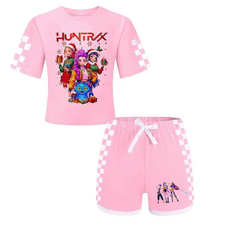 Flower Shape 2- Pink- Witch Hunt Boys And Girls Children's T-Shirt + Shorts Printed Sports Pajamas Children's Set