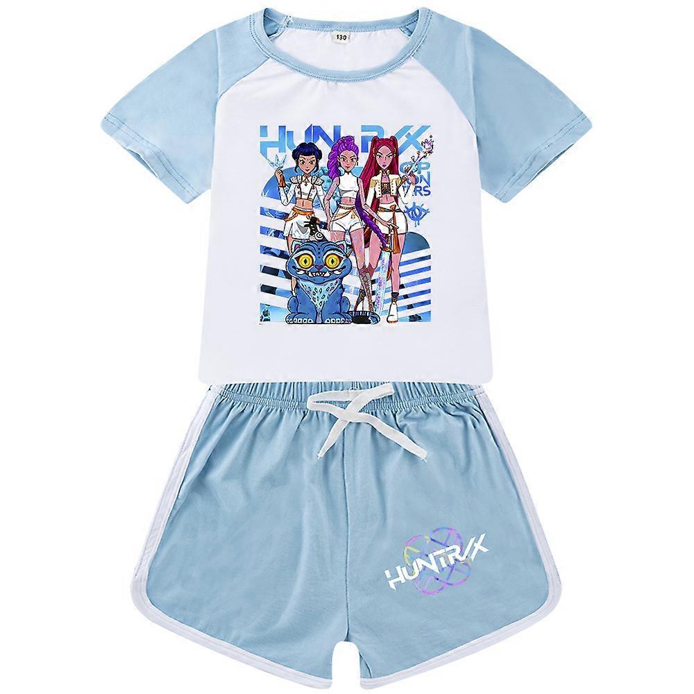Lake Blue-Hot-Selling Witch Hunt Printed Children's Short Home Wear Sportswear Set Qq1231