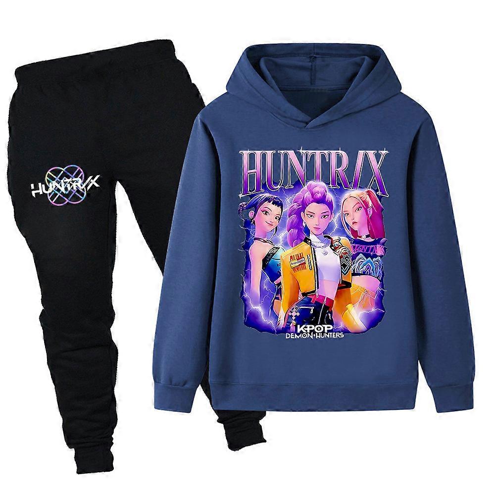 Navy Blue- Witch Hunt Printed Children's Set, Kids' Hoodie And Sweatshirt Set Pb1228