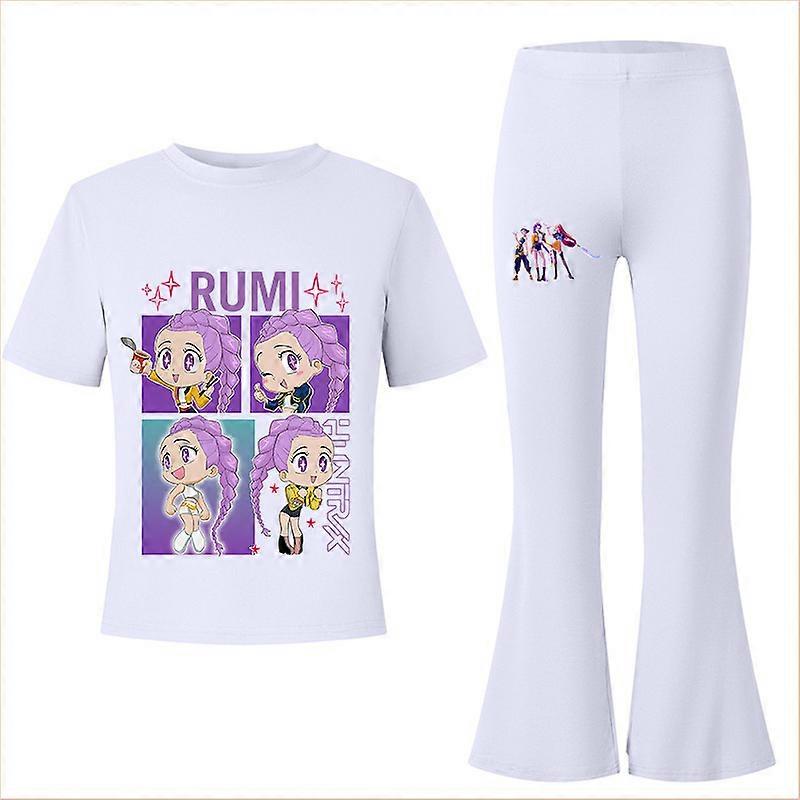 Flower Shape 2- White- Witch Hunter's Big Kids Summer Short-Sleeved T-Shirt + Flared Long Pants Fashionable Casual Set