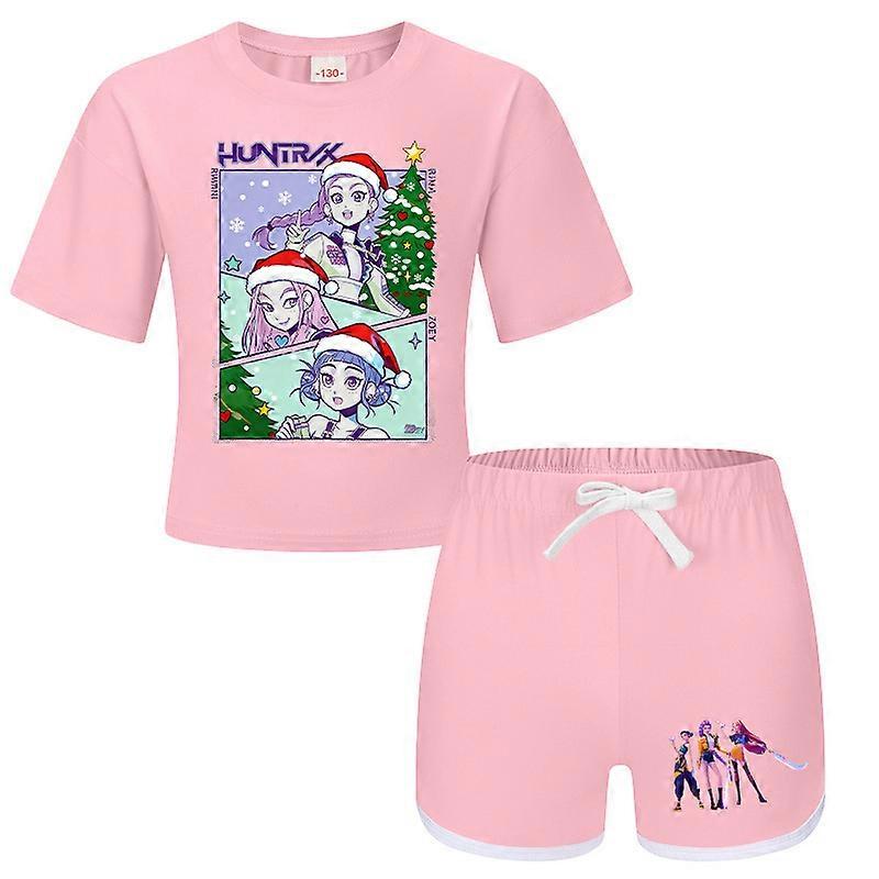 Pinkish- Witch Hunt Boys And Girls Children's T-Shirt + Shorts Printed Sports Pajamas Children's Set