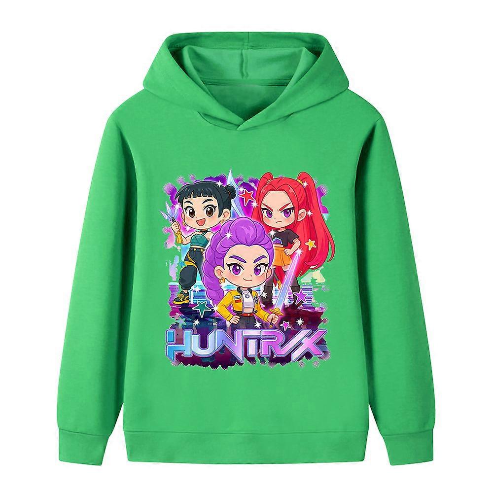 Green- Witch Hunting Group Printing Pattern Medium And Large Children Boys And Girls Hoodie Sweater B12 22