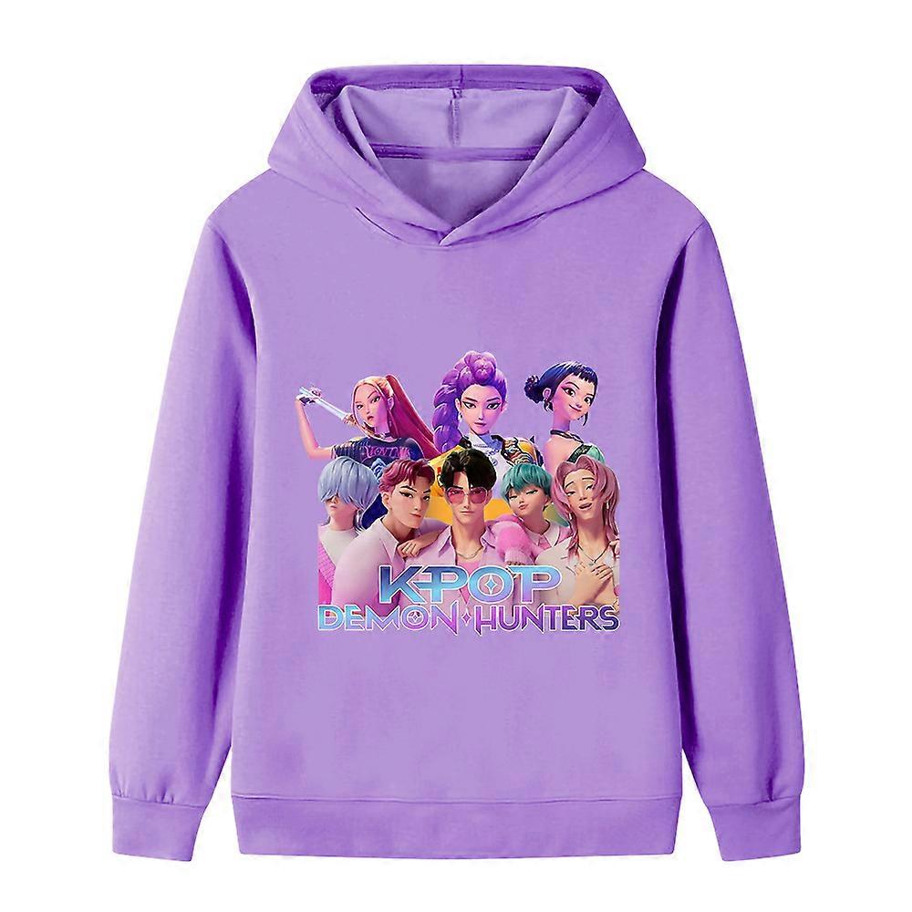 Purple- Witch Hunt Print Pattern Big Kids Boys And Girls Hooded Sweatshirt B1204