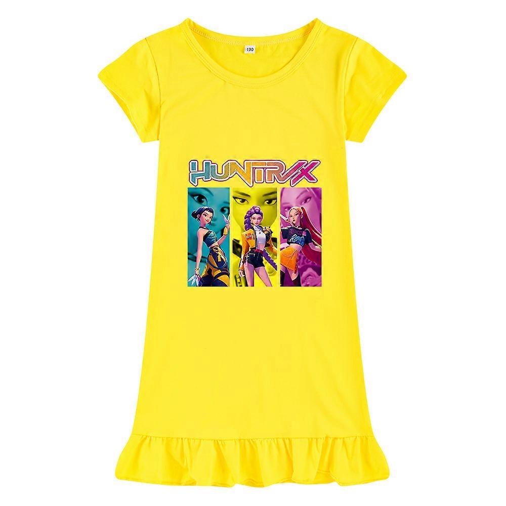 Yellow-The Best-Selling K-Pop Witch Hunt Printed Girls' Dress, Ice Silk Sleeping Dress M1236