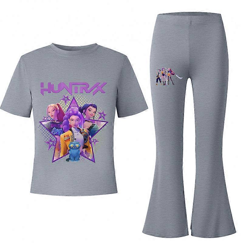 2-Gray- Witch Hunter's Big Kids Summer Short-Sleeved T-Shirt + Flared Long Pants Fashionable Casual Set