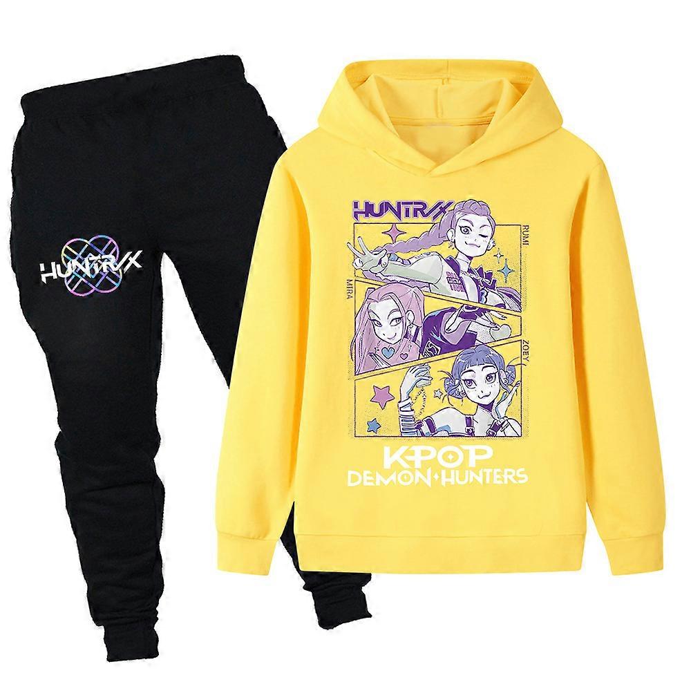 Yellow- Hot Selling Witch Hunting Group Printing Children's Suit Kids Hoodie Sweater Suit Pb1199