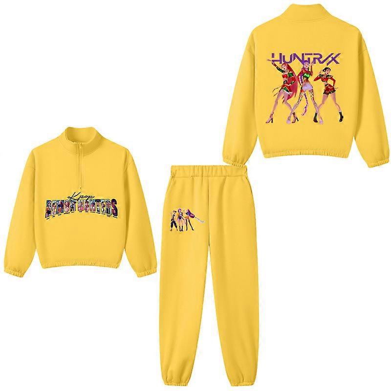 Yellow- Witch Hunt Boys' And Girls' Stand-Up Collar Half-Zipper Hoodies + Long Pants Sportswear Fleece Casual Children's Sets
