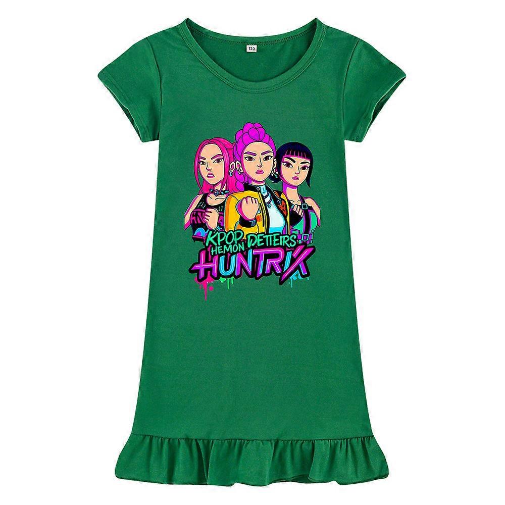 Green-The Best-Selling Witch Hunt Printed Girls' Dress, Ice Silk Sleeping Dress M1210