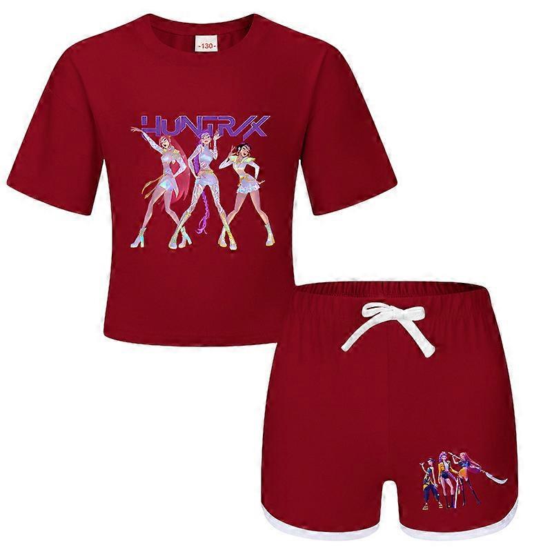 Dark Red- Witch Hunt Boys And Girls Children's T-Shirt + Shorts Printed Sports Pajamas Children's Set