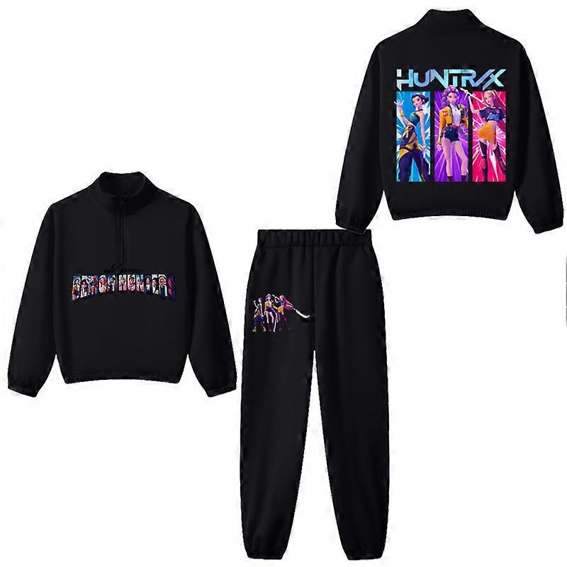 Black- Witch Hunter Boys And Girls Set Collar Half-Zip Sweat Trousers Sports Fleece Casual Children's Suit