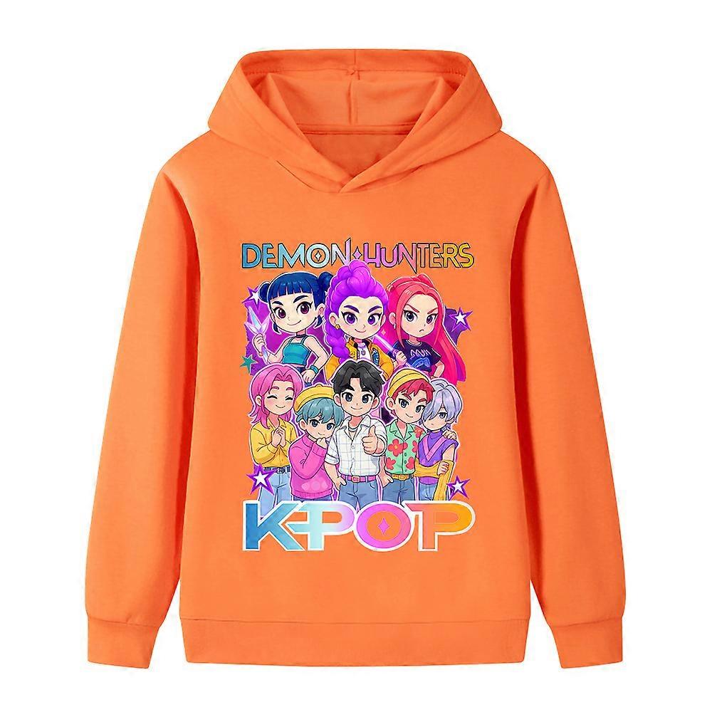 Orange- Witch Hunt Print Pattern Big Kids Boys And Girls Hooded Sweatshirt B1201