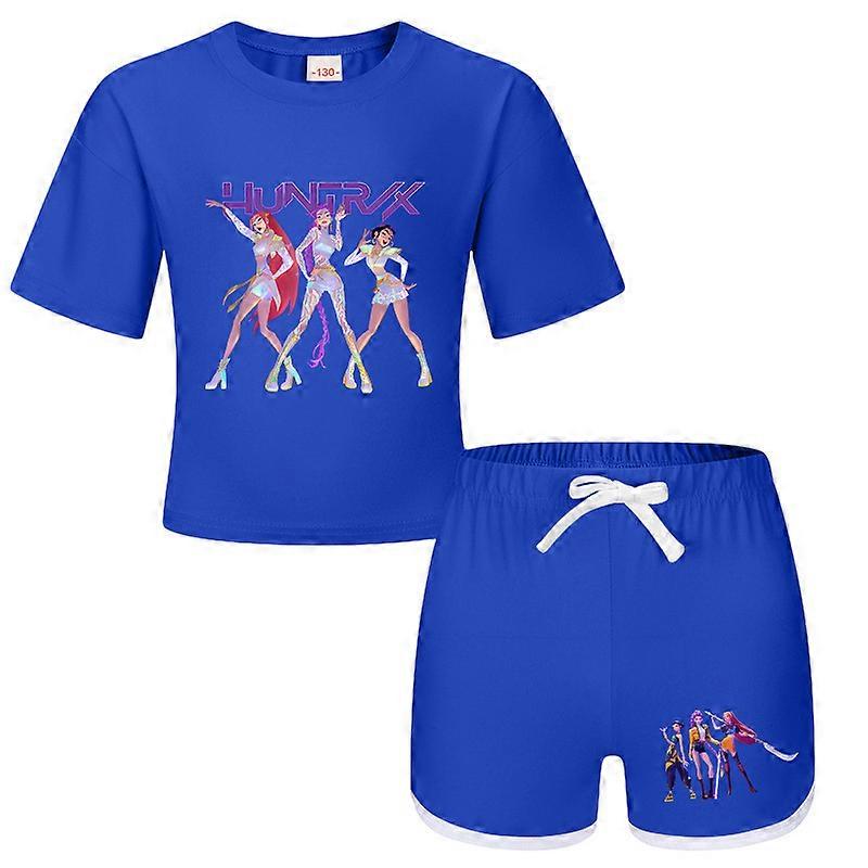 Blue- Witch Hunt Boys And Girls Children's T-Shirt + Shorts Printed Sports Pajamas Children's Set