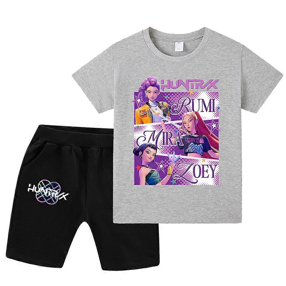 Grey- Witch Hunt's Popular Cartoon-Printed Summer Children's Short-Sleeved Suit Wa1199