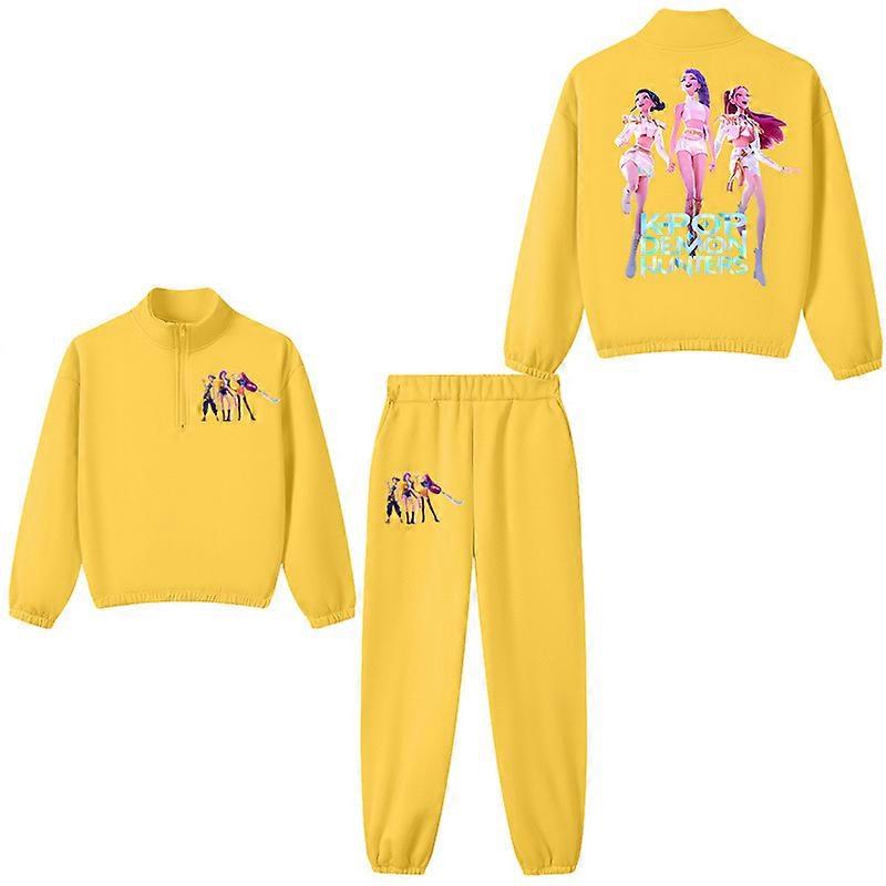 Yellow- Witch Hunt Boys' And Girls' Stand-Up Collar Half-Zipper Hoodies + Long Pants Sportswear Fleece Casual Children's Sets