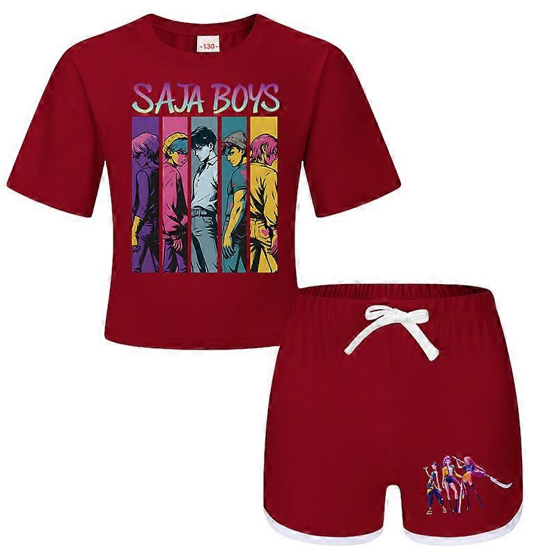 Dark Red- Witch Hunt Boys And Girls Children's T-Shirt + Shorts Printed Sports Pajamas Children's Set