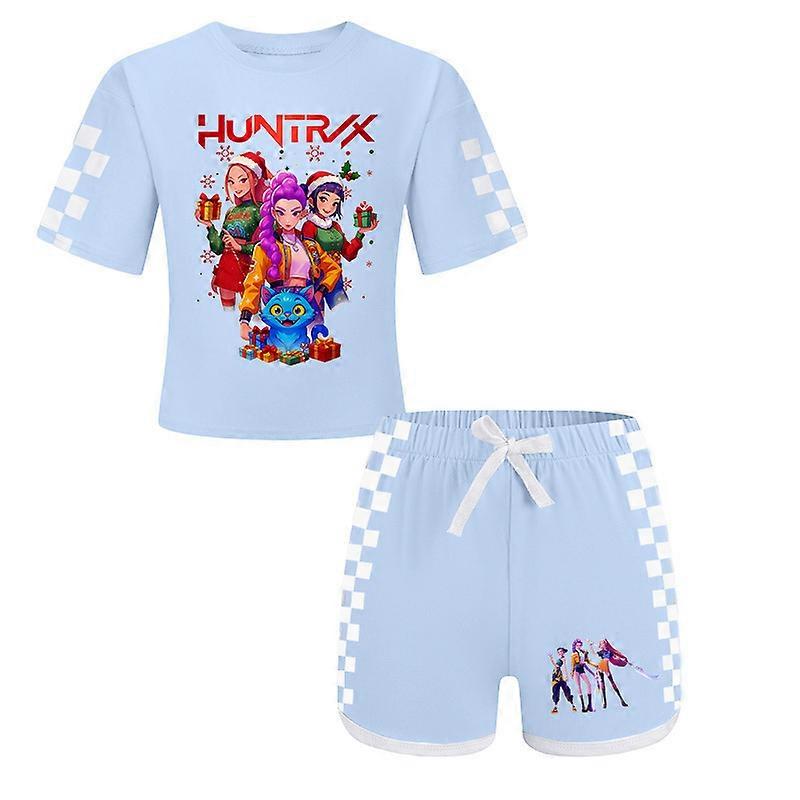 Flower Type 2-Sky Blue- Witch Hunt Boys And Girls Children's T-Shirt + Shorts Printed Sports Pajamas Children's Set