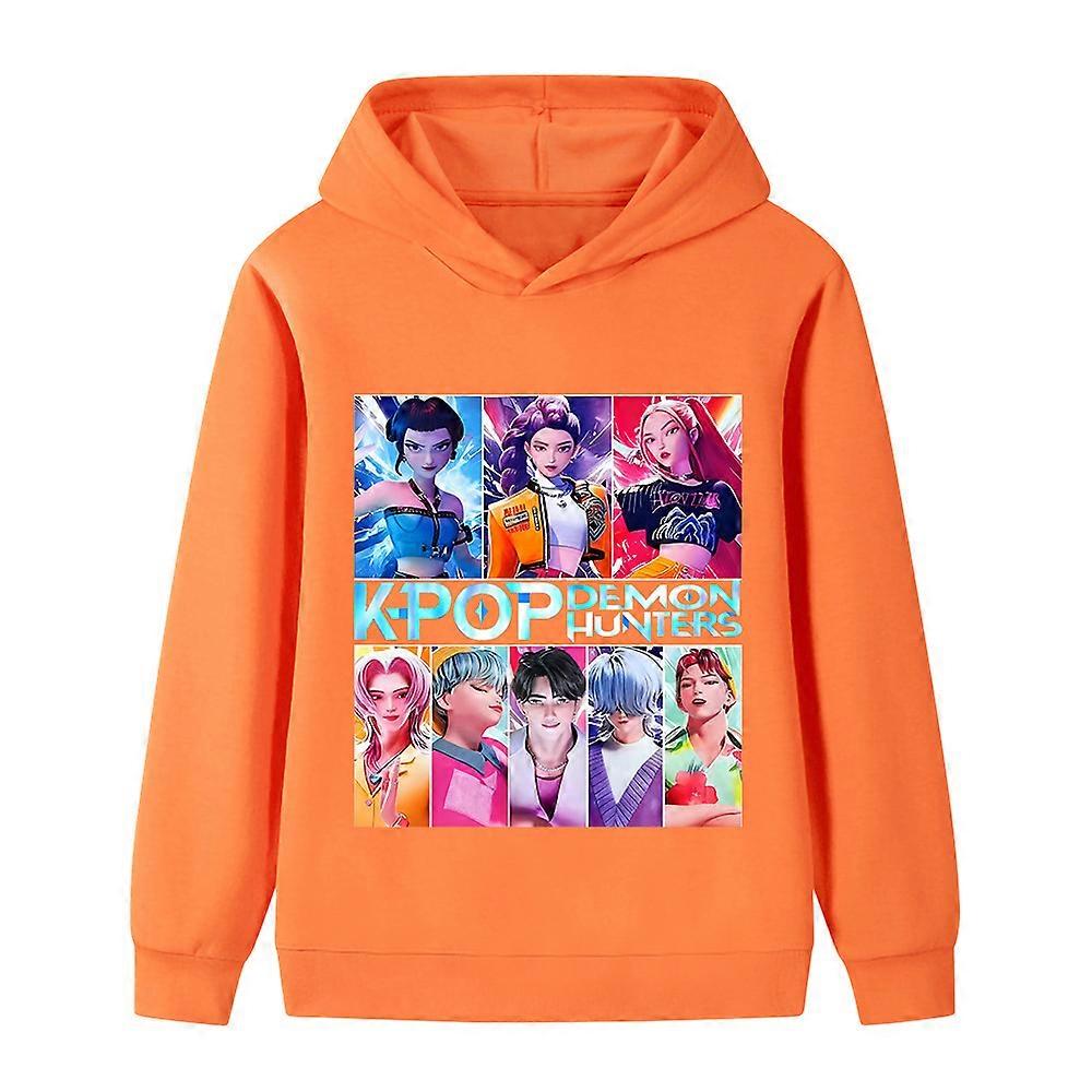 Orange- Witch Hunt Print Pattern Big Kids Boys And Girls Hoodies B1230