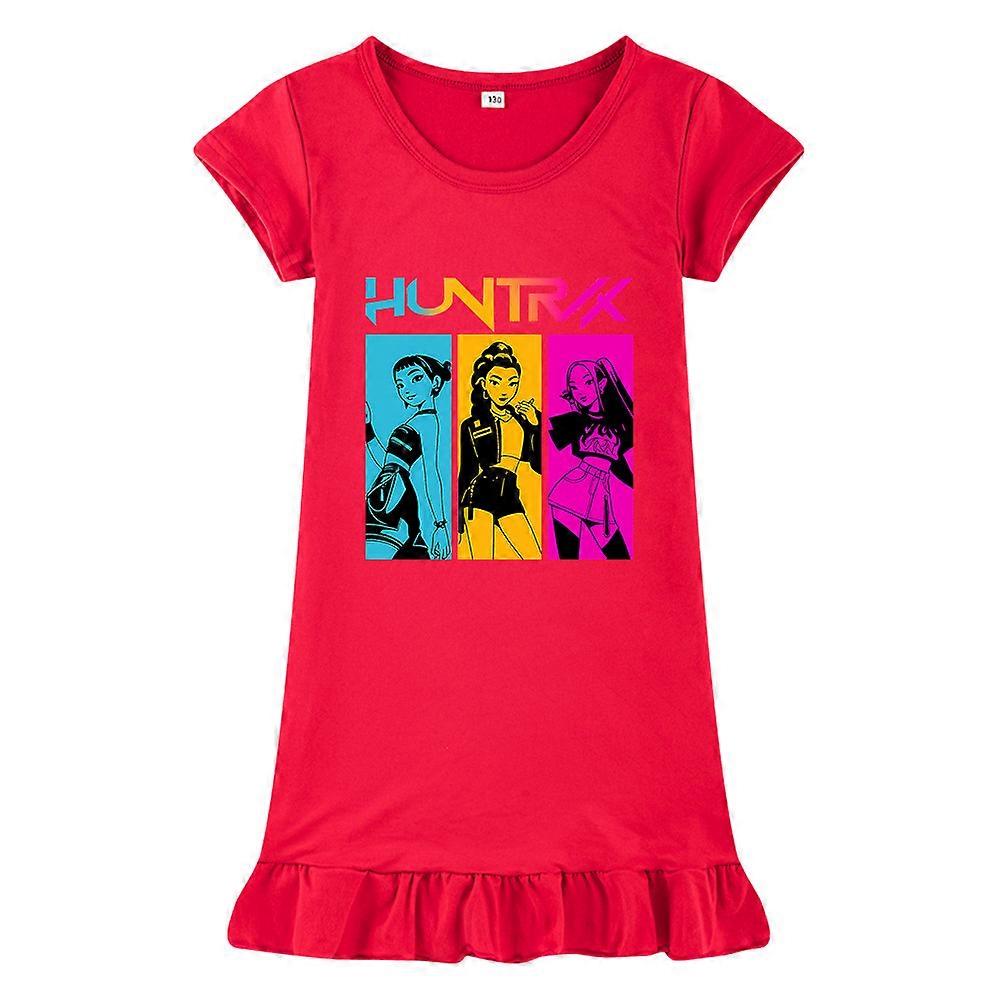 Red-The Best-Selling Witch Hunt Printed Girls' Dress, Ice Silk Sleeping Dress M1203