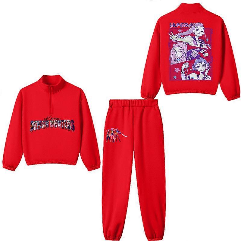 Red- Witch Hunt Boys' And Girls' Stand-Up Collar Half-Zipper Hoodies + Long Pants Sportswear Fleece Casual Children's Sets