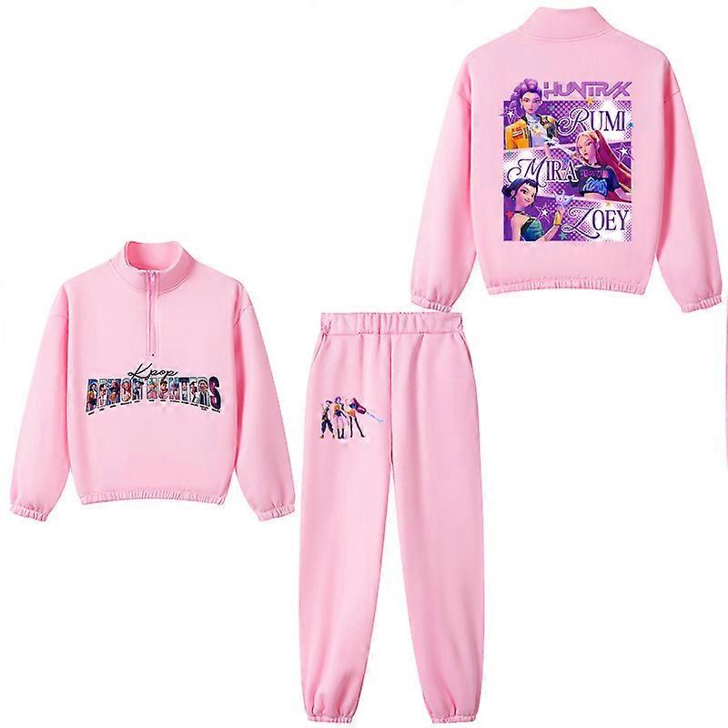 Pink- Witch Hunter Boys And Girls Set Collar Half-Zip Sweat Trousers Sports Fleece Casual Children's Suit