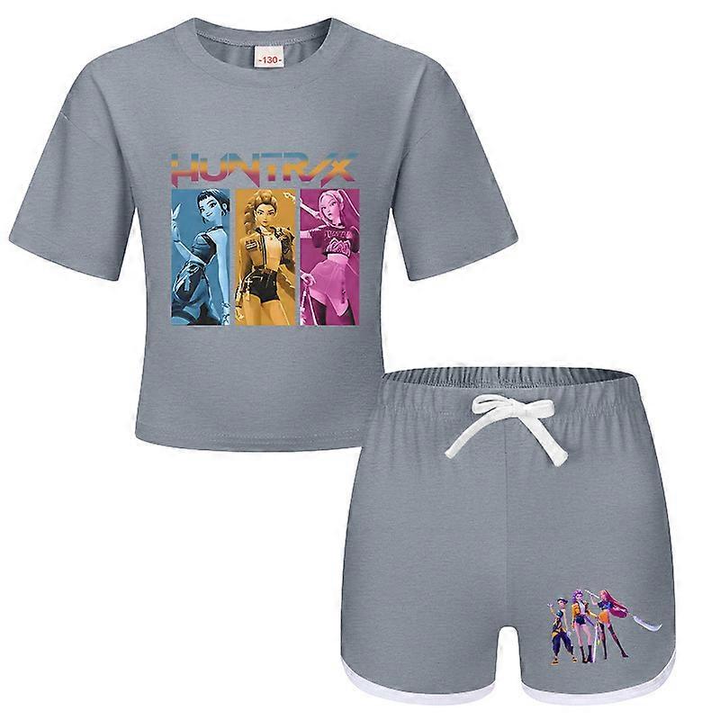 Grey- Witch Hunt Boys And Girls Children's T-Shirt + Shorts Printed Sports Pajamas Children's Set