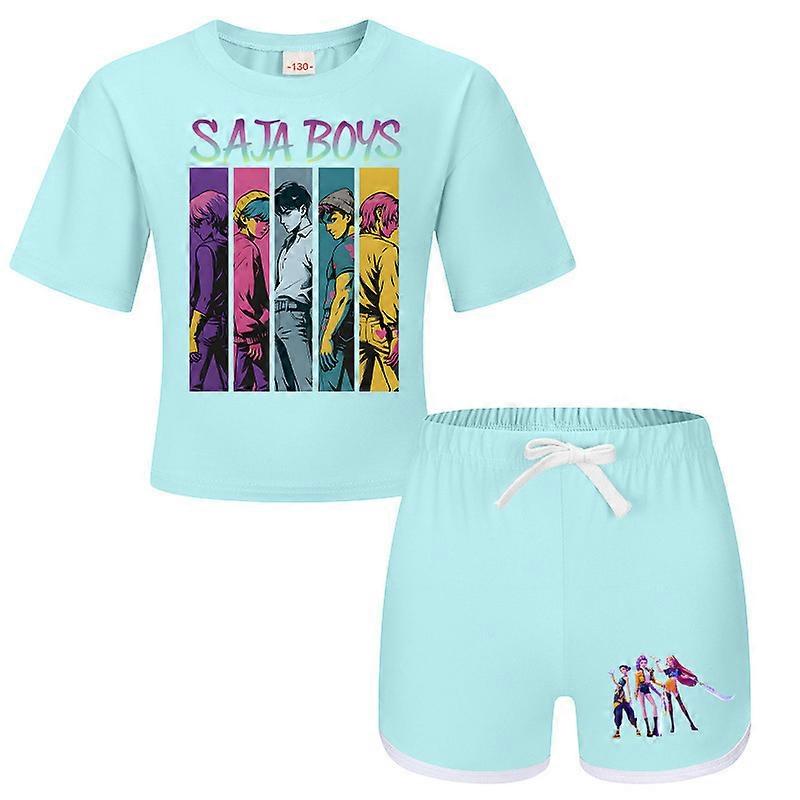 Light Blue- Witch Hunt Boys And Girls Children's T-Shirt + Shorts Printed Sports Pajamas Children's Set