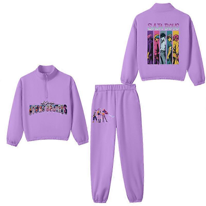 Purple- Witch Hunt Boys' And Girls' Stand-Up Collar Half-Zipper Hoodies + Long Pants Sportswear Fleece Casual Children's Sets