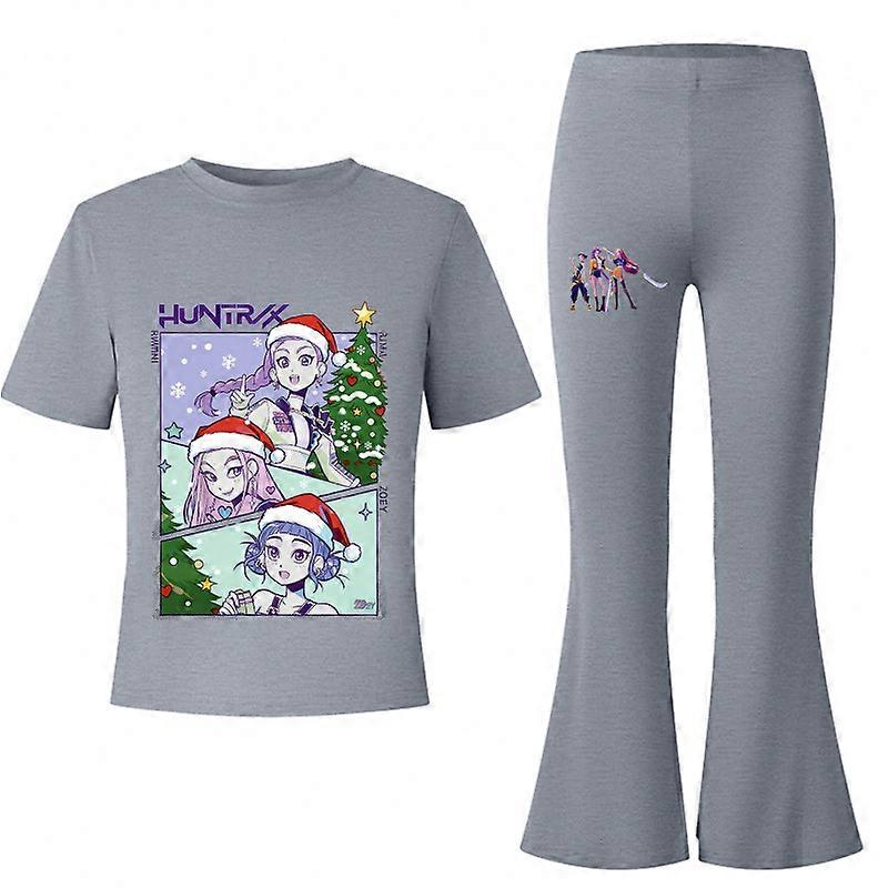 2-Gray- Witch Hunter's Big Kids Summer Short-Sleeved T-Shirt + Flared Long Pants Fashionable Casual Set