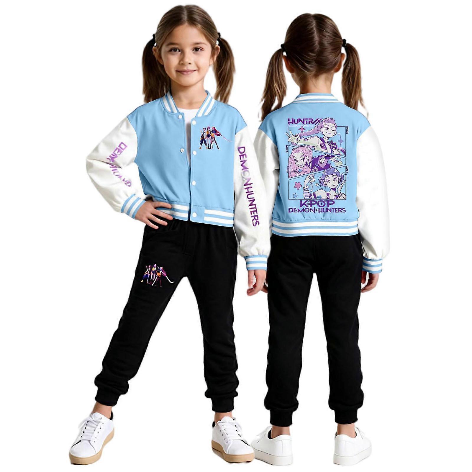 Suit Light Blue- Witch Hunt Witch Hunt Spring And Autumn Children's Short Baseball Jacket Set 4829Xx Blue