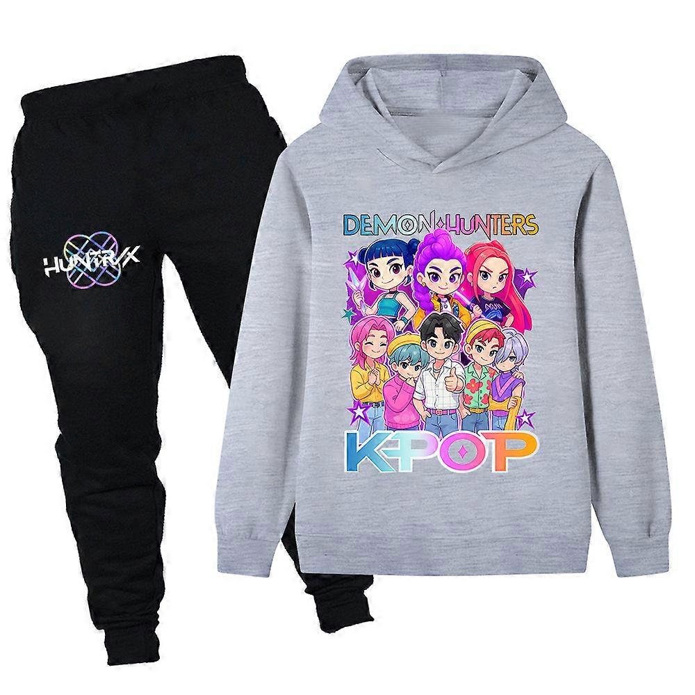 Grey- Witch Hunt Printed Children's Set, Kids' Hoodie And Sweatshirt Set Pb1201