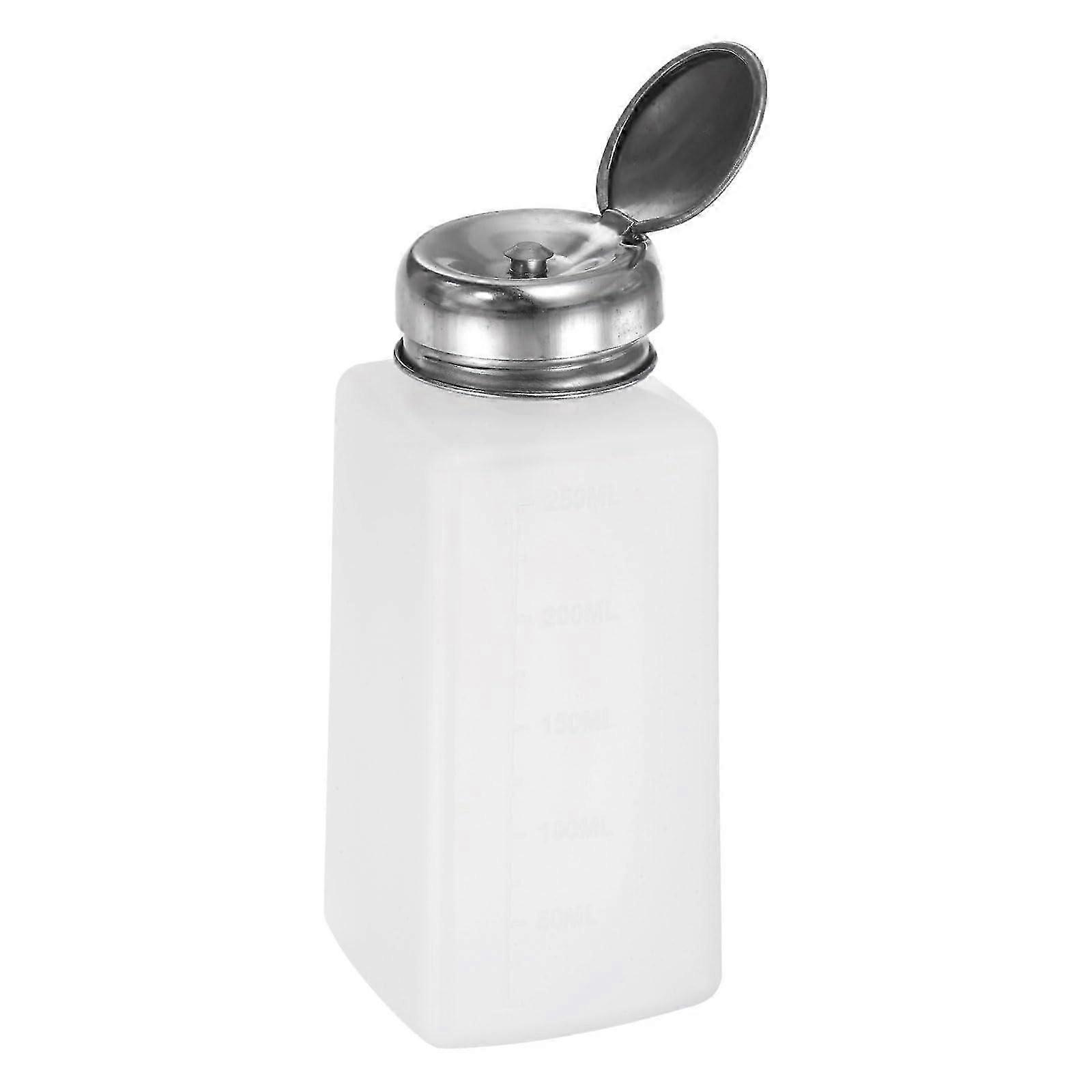 Solvent alcohol dispenser 250ml liquid pump bottle with stainless steel cap, suitable for acetone cleaners and polishes.