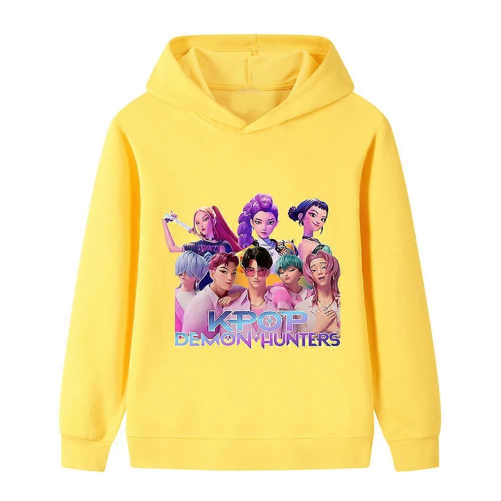 Yellow- Witch Hunt Print Pattern Big Kids Boys And Girls Hooded Sweatshirt B1204