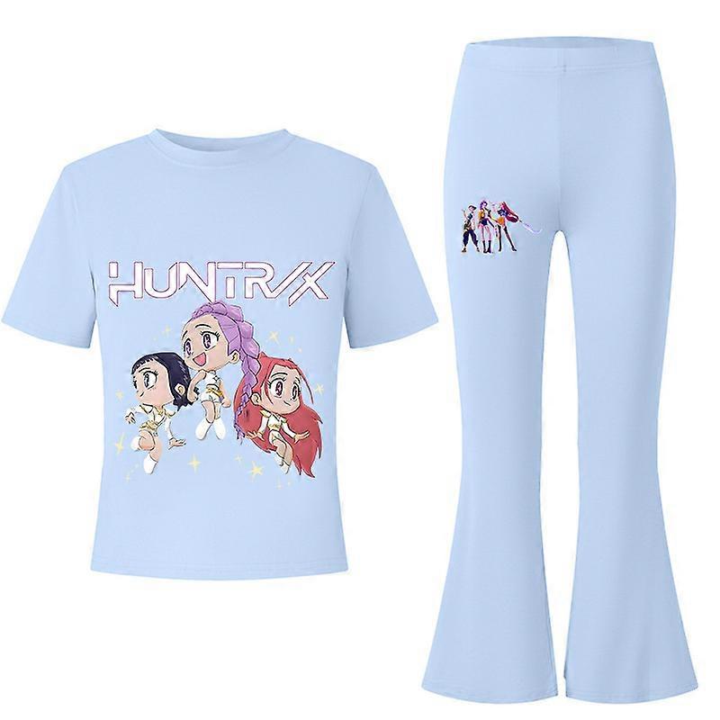 Flower Type 2-Sky Blue- Witch Hunter's Big Kids Summer Short-Sleeved T-Shirt + Flared Long Pants Fashionable Casual Set
