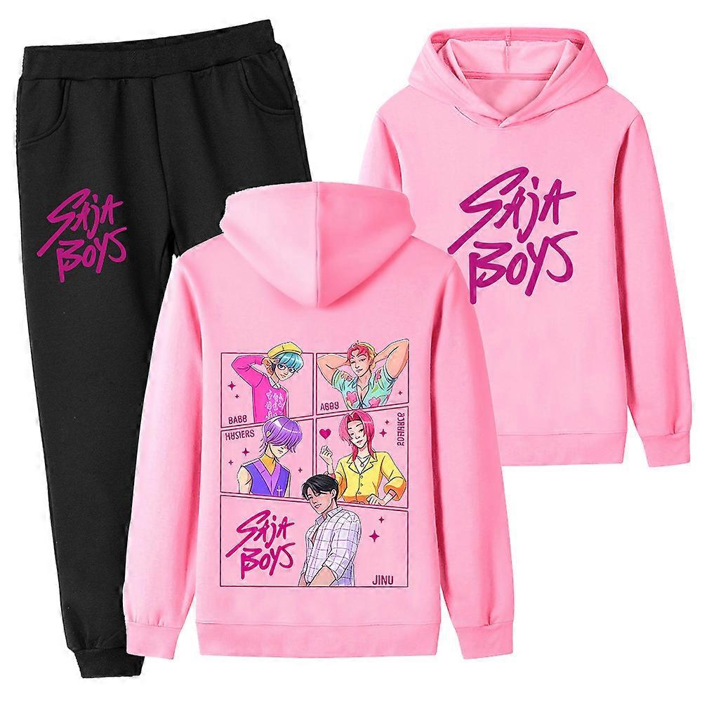 Pink- Witch Hunt Printed Children's Set, Kids' Hoodie And Sweatshirt Set Pb1217-2
