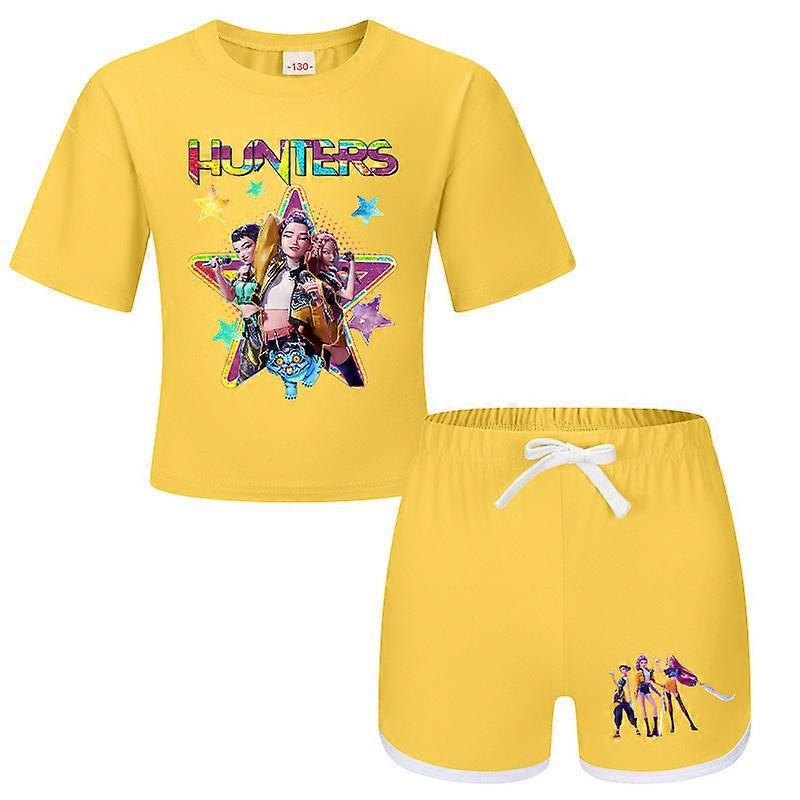 Yellow- Witch Hunt Boys And Girls Children's T-Shirt + Shorts Printed Sports Pajamas Children's Set