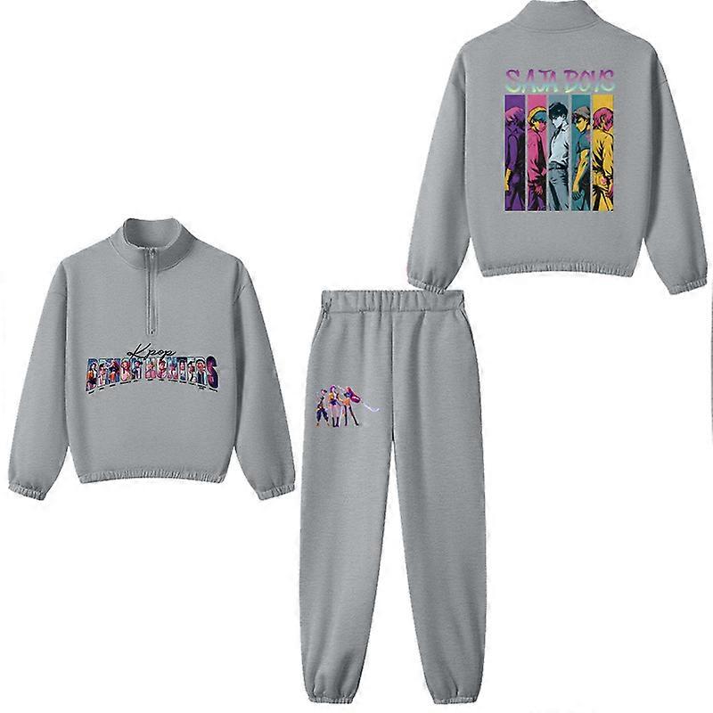Grey- Witch Hunt Boys' And Girls' Stand-Up Collar Half-Zipper Hoodies + Long Pants Sportswear Fleece Casual Children's Sets