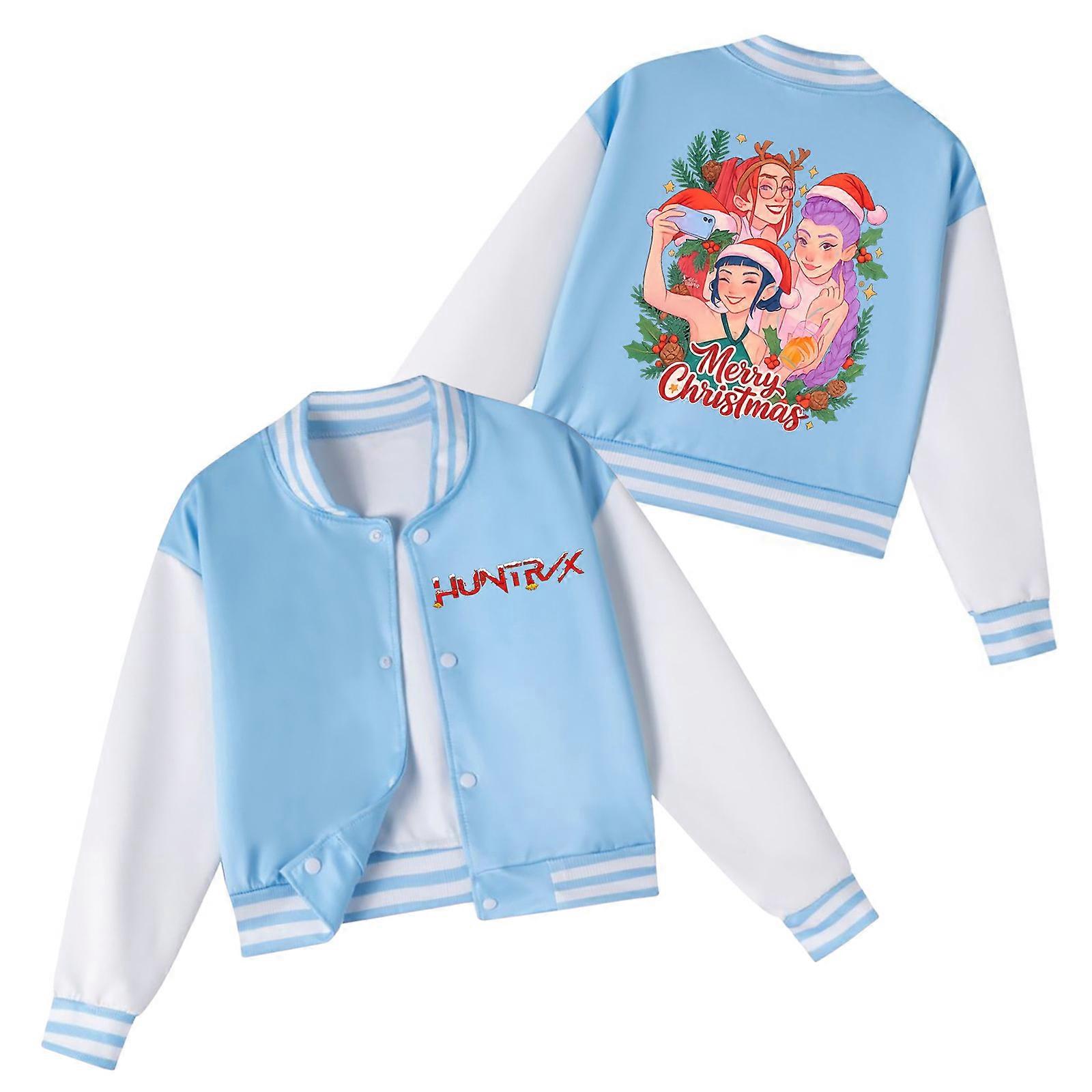 6011 Sky Blue- Witch Hunt Group Spring And Autumn Children's Short Baseball Jackets For Boys And Girls Christmas Style Csl6011-6012