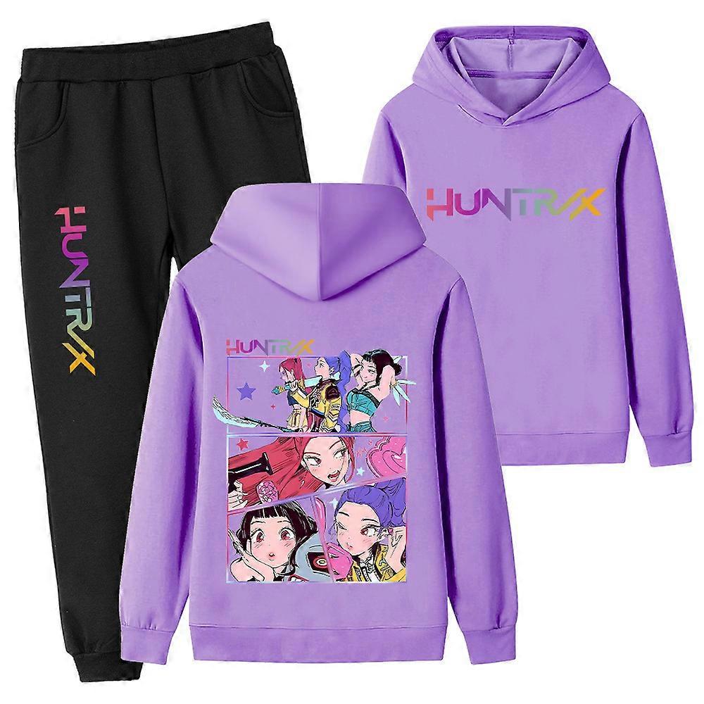 Purple- Witch Hunt Printed Children's Set, Kids' Hoodie And Sweatshirt Set Pb1218-2