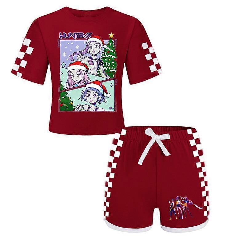 Flower Type 2-Dark Red- Witch Hunt Boys And Girls Children's T-Shirt + Shorts Printed Sports Pajamas Children's Set