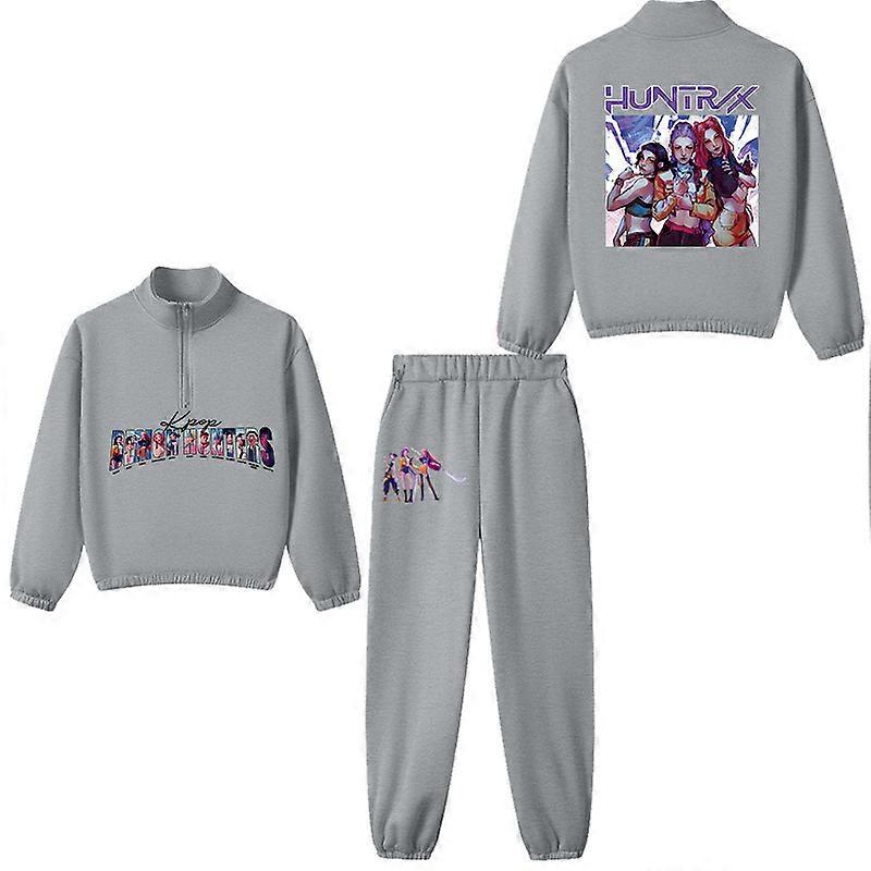 Grey- Witch Hunt Boys' And Girls' Stand-Up Collar Half-Zipper Hoodies + Long Pants Sportswear Fleece Casual Children's Sets