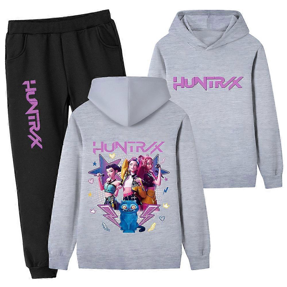 Grey- Witch Hunt Printed Children's Set, Kids' Hoodie And Sweatshirt Set Pb1216-2
