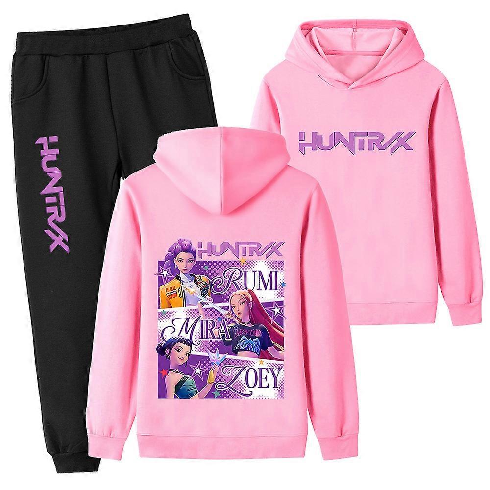 Pink- Witch Hunt Printed Children's Set, Kids' Hoodie And Sweatshirt Set Pb1199-2