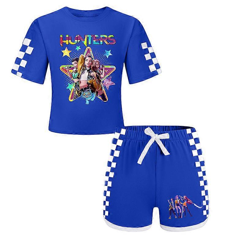 Pattern 2-Blue- Witch Hunt Boys And Girls Children's T-Shirt + Shorts Printed Sports Pajamas Children's Set