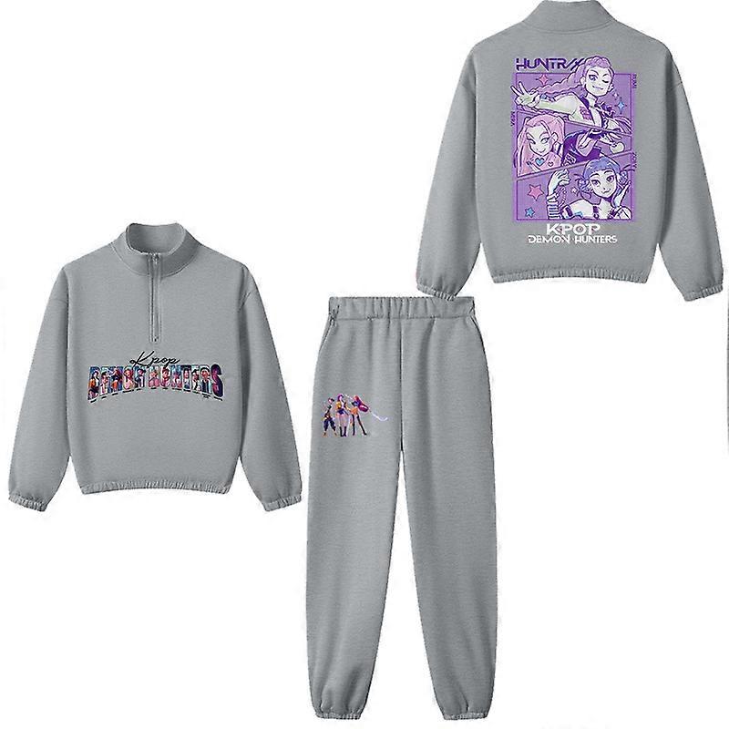 Grey- Witch Hunting Group Boys And Girls Stand Collar Half Zip Sweater + Trousers Sports Fleece Casual Children Suit